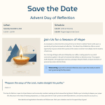 Advent Day of Reflection – December 6 - ADVENT DAY OF REFLECTION Saturday, December 6 9:00 AM – 2:00 PM “Prepare the way of the Lord, make straight his paths. Every valley shall be filled and every mountain and hill shall be made low.” – Luke 3:4-5 Come and prepare your heart for the Season of hope and expectation. This peaceful day of […]